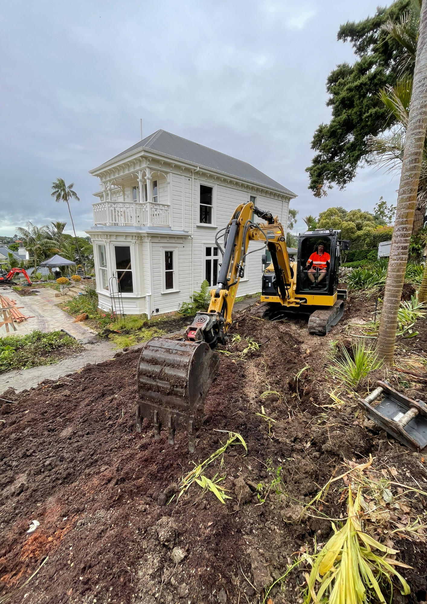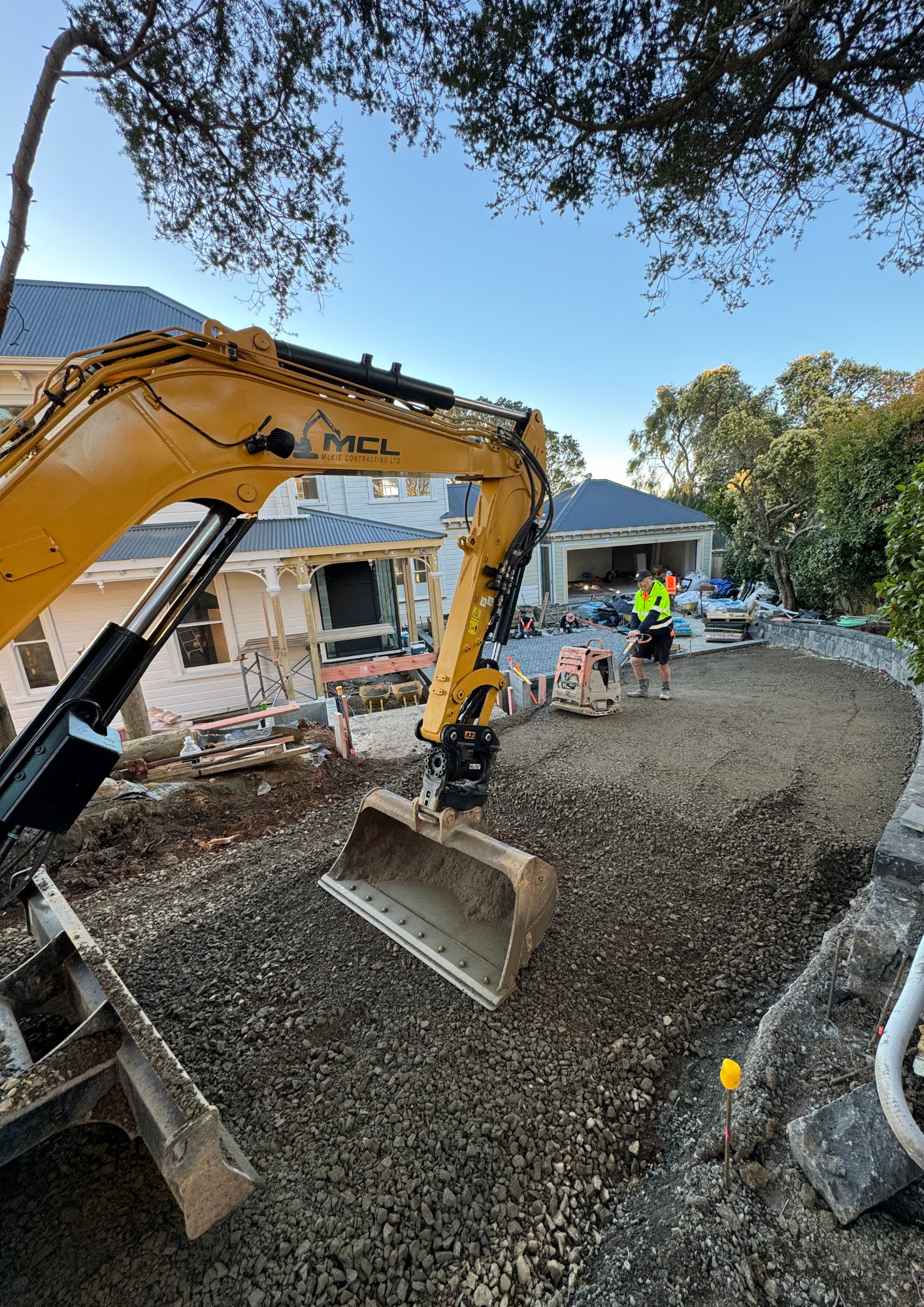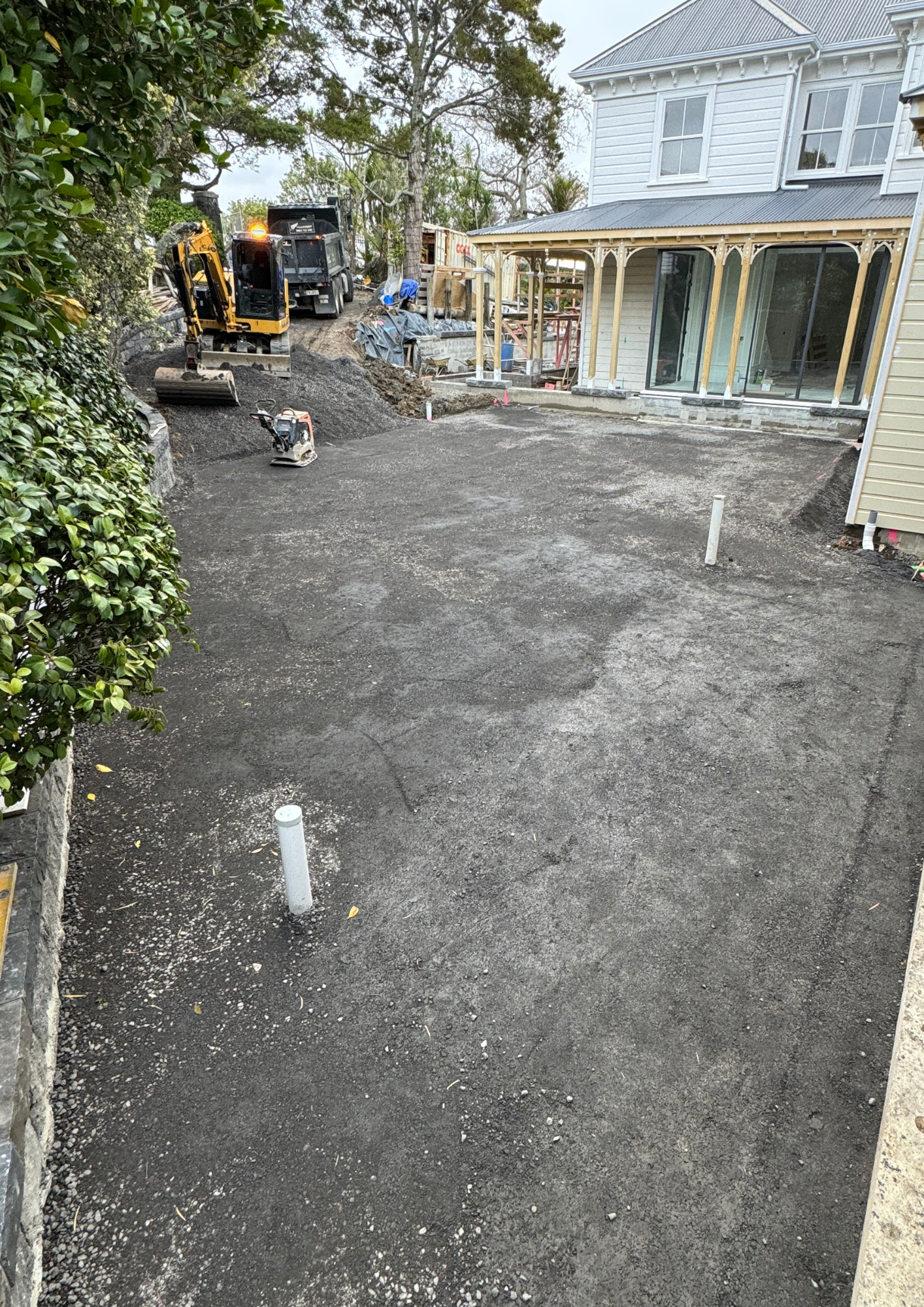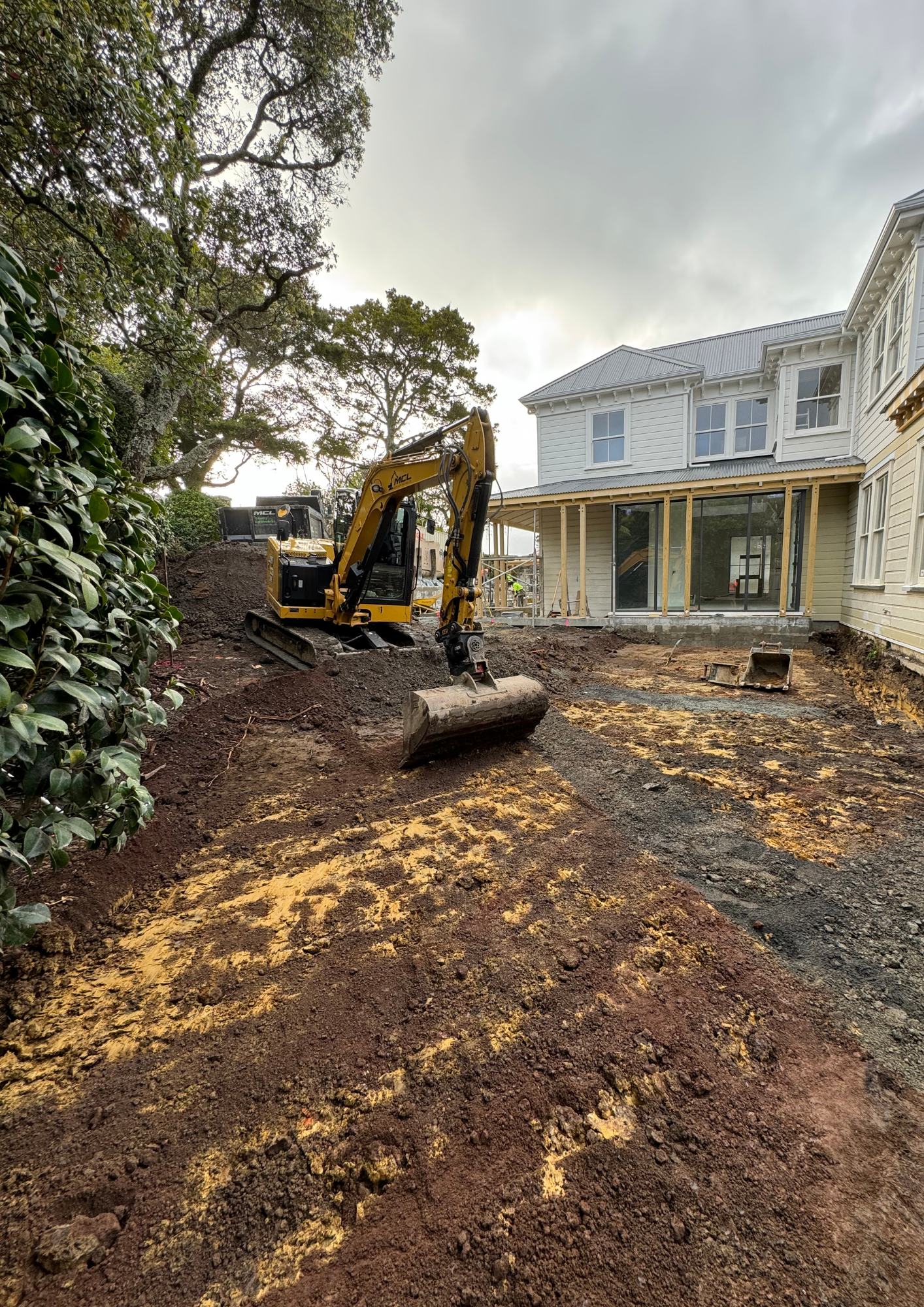 This Remuera project was unique as it wasn’t a new build but a full house renovation, requiring careful planning and precision to work around the existing structure. Our team handled every stage of the site preparation, turning a challenging city site into a clean, functional platform for the renovation and landscaping works to follow.