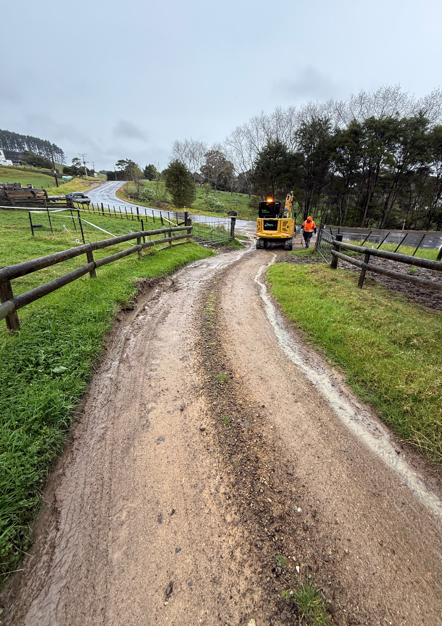 We widened and reshaped a rural driveway in Te Kauwhata, rebuilding watertables and laying new metal to improve drainage and stop water ruts.